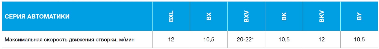 * Для приводов серии BXV повышенная скорость возможна только для моделей AGF, остальные модели имеют скорость 12 м/мин.